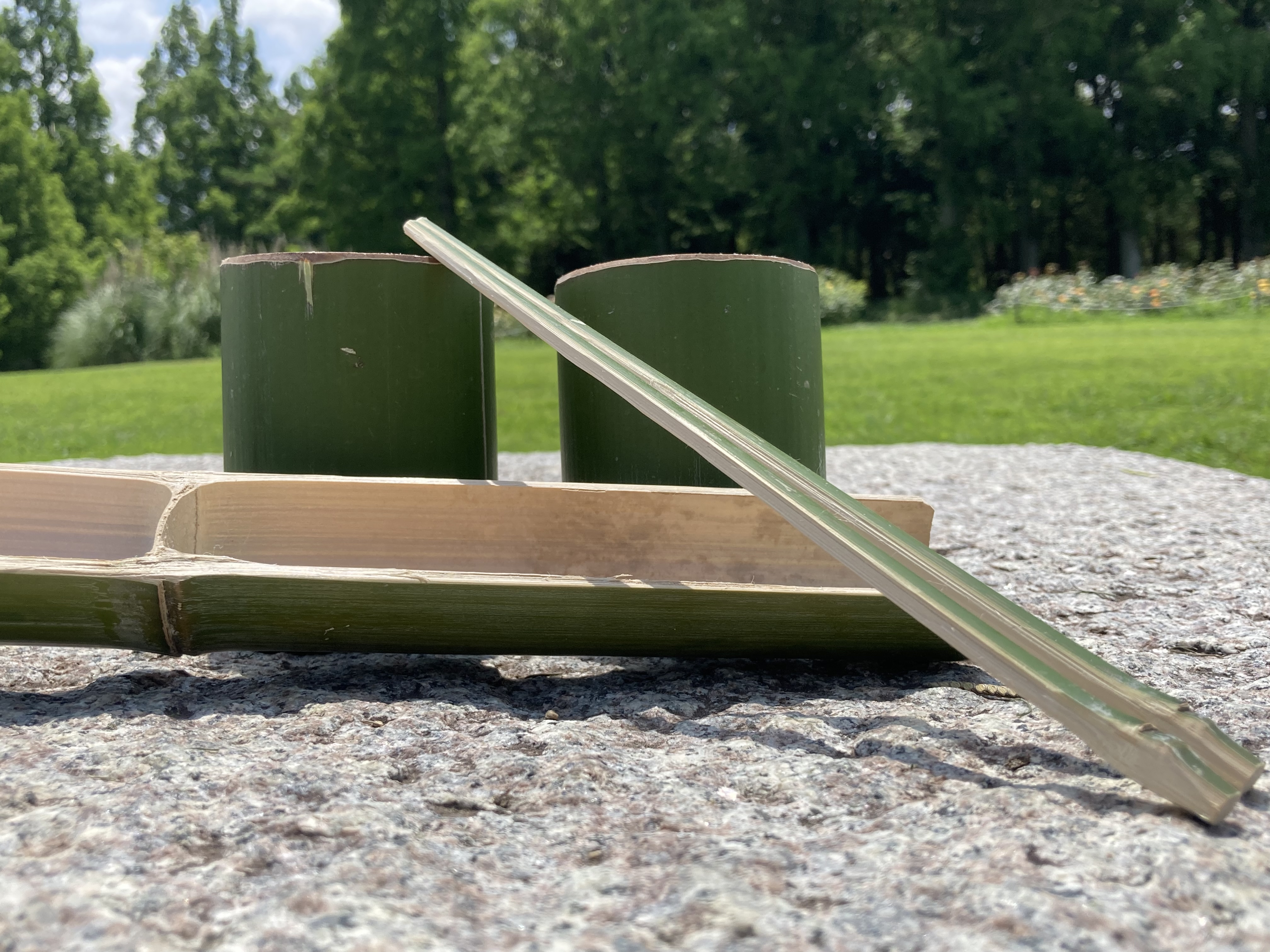 昔なつかしの竹ぽっくりや水鉄砲、食器セット(コップ、箸、器)やほうきなど、竹を使って作ってみよう!