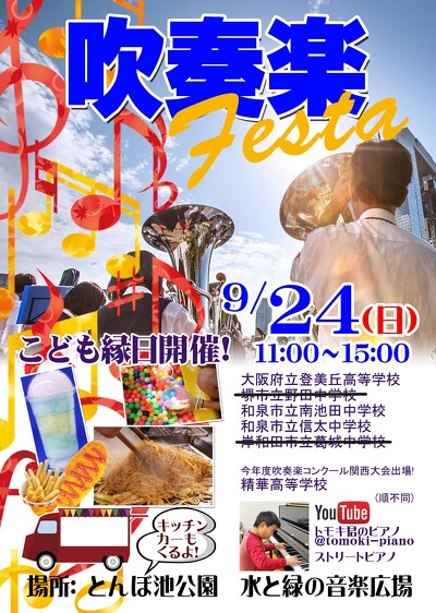 蜻蛉池公園で近隣の中学・高校の吹奏楽部による演奏会を行います!