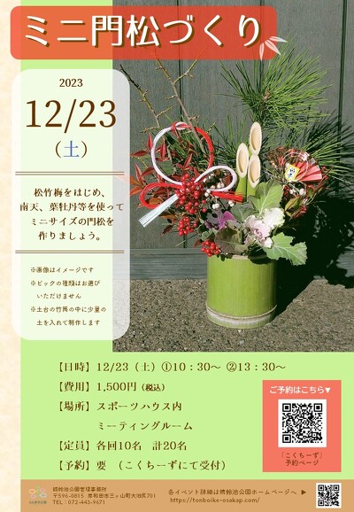 門松づくり 2023年12月23日(大阪府): 松竹梅をはじめ、南天、葉牡丹を使ってミニサイズの門松を作りましょう。 - こくちーずプロを使えば、驚くほど簡単で安全なイベントの告知・集客がで...