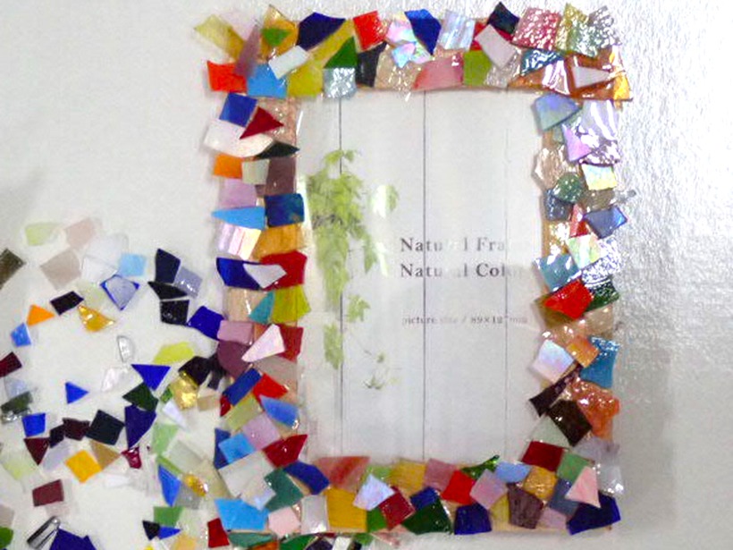 木工ボンドでフォトフレームの廻りに貼って作ります。