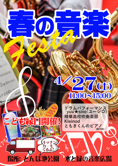 蜻蛉池公園で春の音楽festaを開催します。