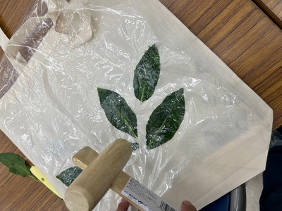 自分で摘んだ藍の葉っぱをトントンたたいて、オリジナルのトートバックを作っちゃいましょう!