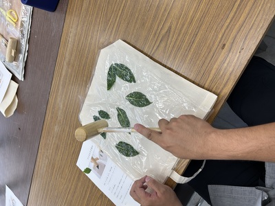 藍の葉っぱでたたき染め体験 7/27(土)、8/18(日)