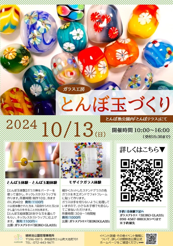 とんぼ玉づくりやモザイクガラスを使ったワークショップ体験ができます。