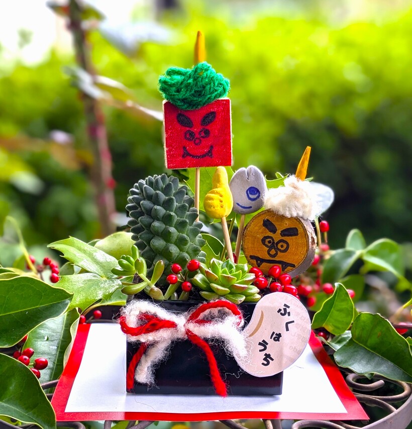 サボテンと多肉植物を寄せ植えして、節分かざりで楽しくアレンジ!