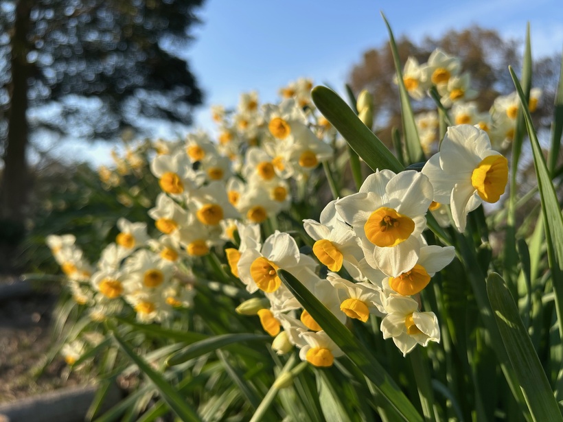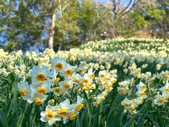 蜻蛉池公園・水仙郷に咲き誇るニホンズイセン。ただいま見ごろを迎えています。