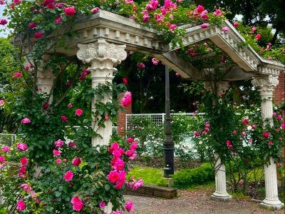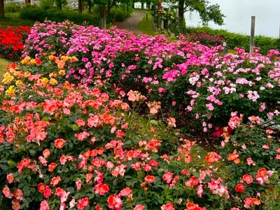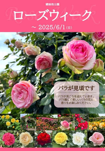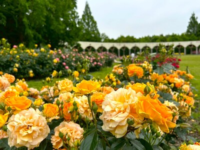 蜻蛉池公園のバラ園にて、美しいバラと豊かな香りをお楽しみください。 お車でご来園の場合は、第2駐車場への駐車がおすすめです。