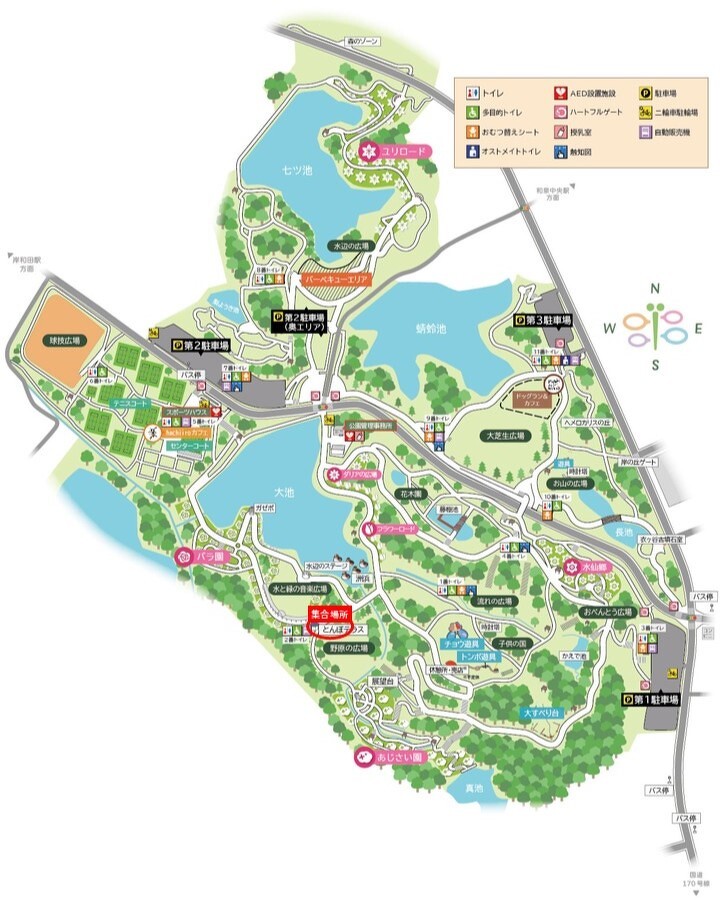 ※スマートフォンのアプリやインターネット上での検索において、「蜻蛉池公園」または公園内の施設名等を入力・検索した場合、表示される結果や地図上のピン等が正確な位置から多少ずれて表示される場合がございます。必ず事前に、開催場所または集合場所をご自身でご確認の上、ご来園ください。
