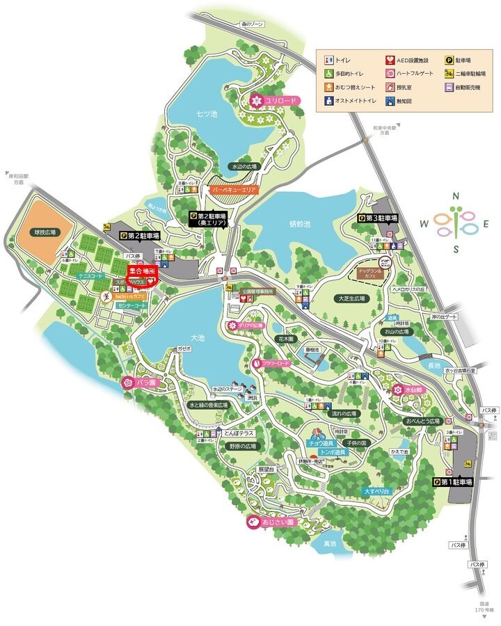 ※スマートフォンのアプリやインターネット上での検索において、「蜻蛉池公園」または公園内の施設名等を入力・検索した場合、表示される結果や地図上のピン等が正確な位置から多少ずれて表示される場合がございます。必ず事前に、開催場所または集合場所をご自身でご確認の上、ご来園ください。