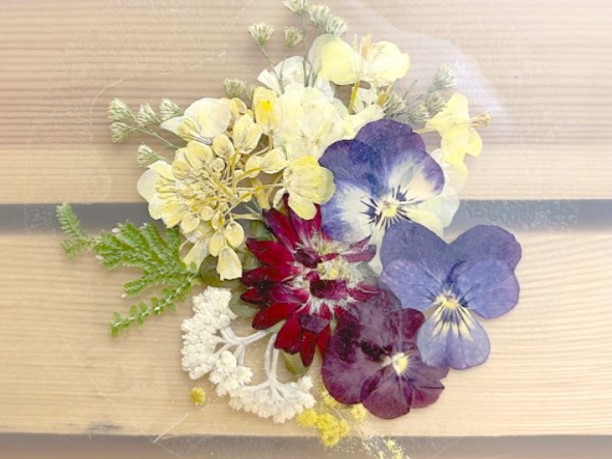 蜻蛉池公園の花を押し花にして、自分だけの素敵なクリアファイルをつくりましょう!実際に咲いていた花を使用するので、さまざまな色や形のものを使い、自分好みのオリジナル作品を作ることができます。