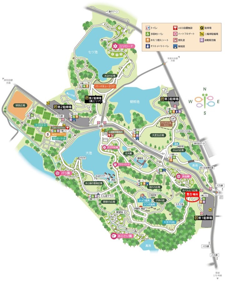 ※スマートフォンのアプリやインターネット上での検索において、「蜻蛉池公園」または公園内の施設名等を入力・検索した場合、表示される結果や地図上のピン等が正確な位置から多少ずれて表示される場合がございます。必ず事前に、開催場所または集合場所をご自身でご確認の上、ご来園ください。