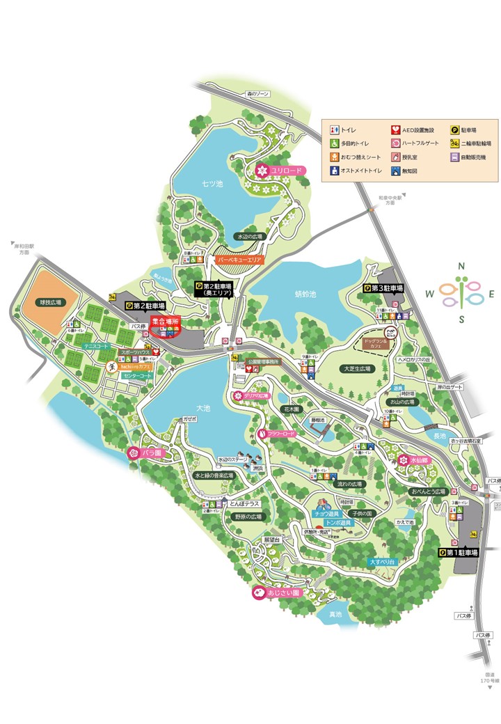 ※スマートフォンのアプリやインターネット上での検索において、「蜻蛉池公園」または公園内の施設名等を入力・検索した場合、表示される結果や地図上のピン等が正確な位置から多少ずれて表示される場合がございます。必ず事前に、開催場所または集合場所をご自身でご確認の上、ご来園ください。