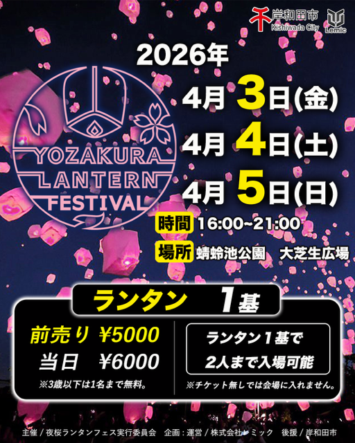 日 時:2026年4月3日(金)、4日(土)、5日(日)16:00~21:00 (ランタンリリース20:00予定)