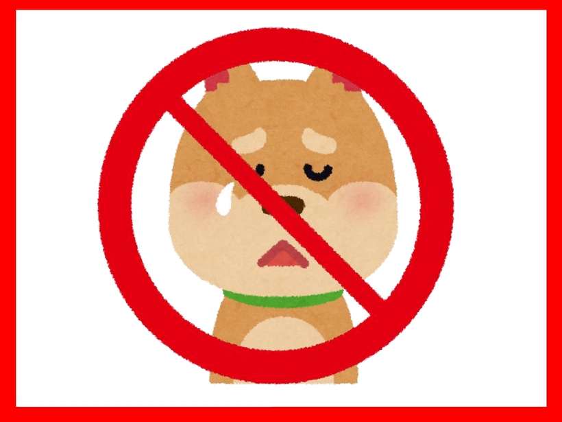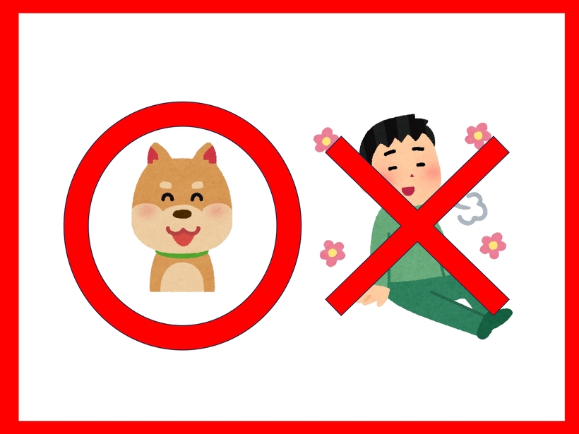 【ワンちゃん禁止】のベンチは人間のみが利用可能です。膝の上にワンちゃんを