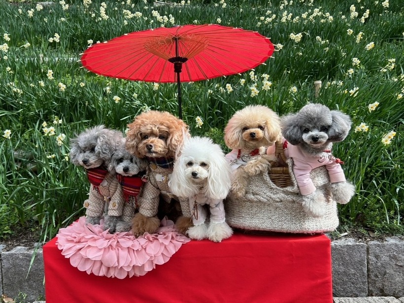 上記のご意見を受け、【ワンちゃん専用】の赤い毛氈ベンチと番傘を設置いたしましたので、