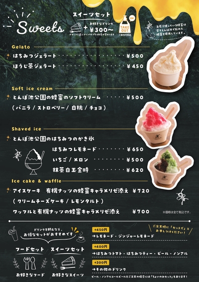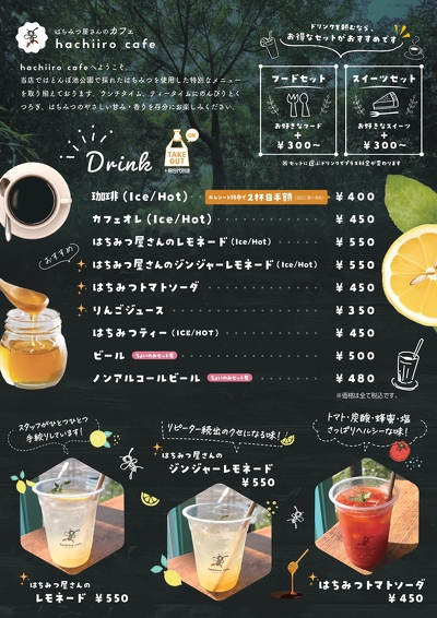 手絞りレモンを使ったレモネードやジンジャーレモネード、はちみつジェラートや、養蜂家さんだけが