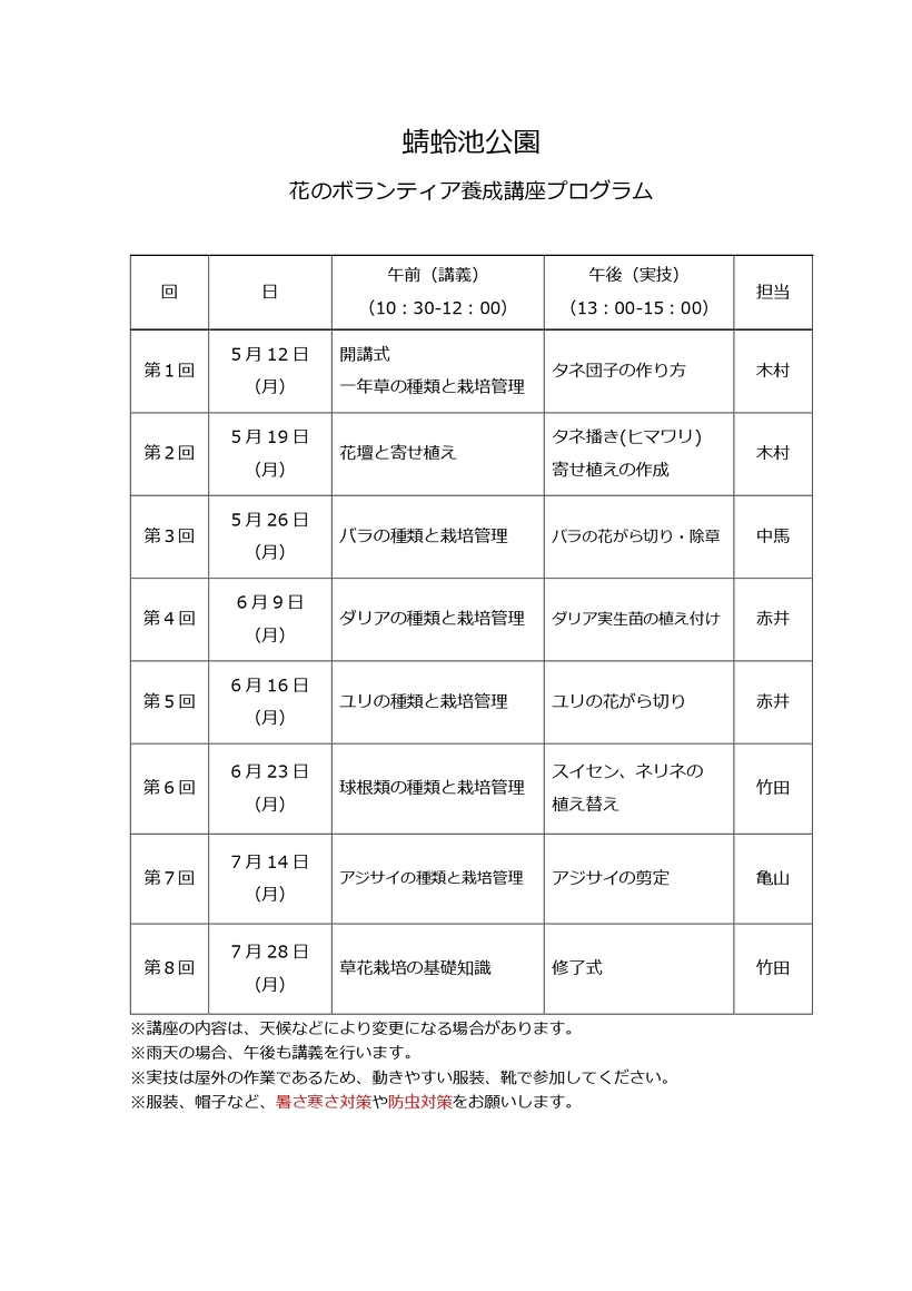 令和7年度春 花のボランティア養成講座 受講生募集