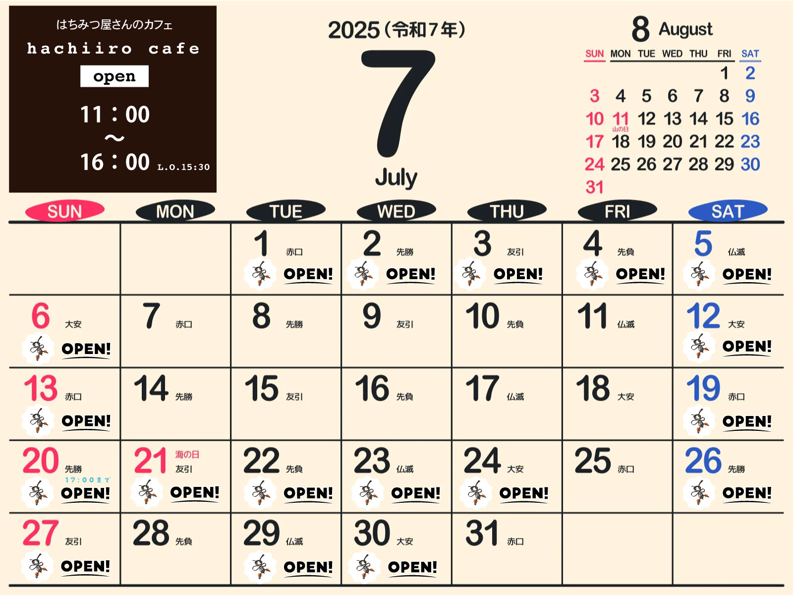 7月は平日もオープンします✨カレンダーチェックして下さいね