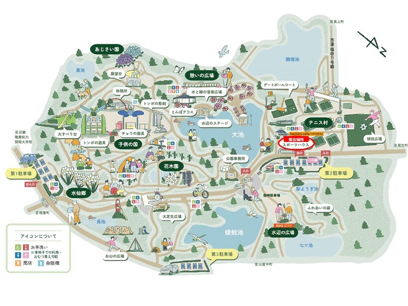 蜻蛉池公園までの交通費、駐車場代は各自負担いただきます。