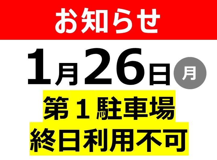 第1駐車場工事のお知らせ 1/26(月)