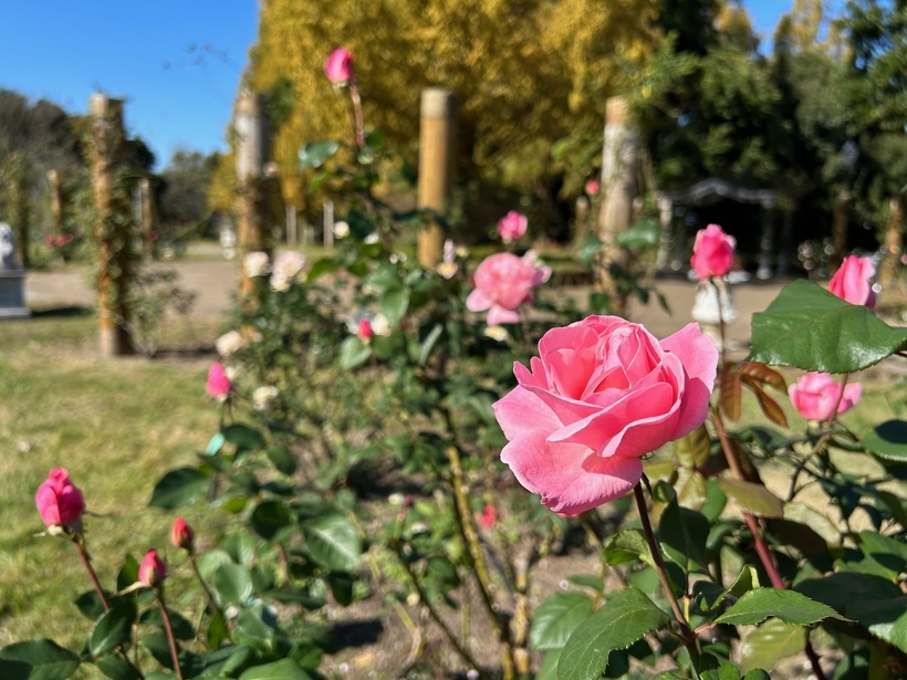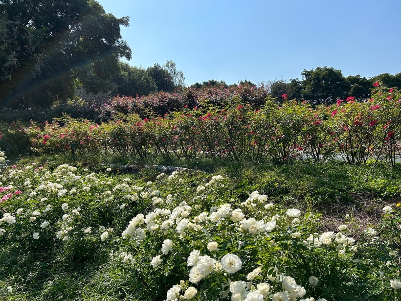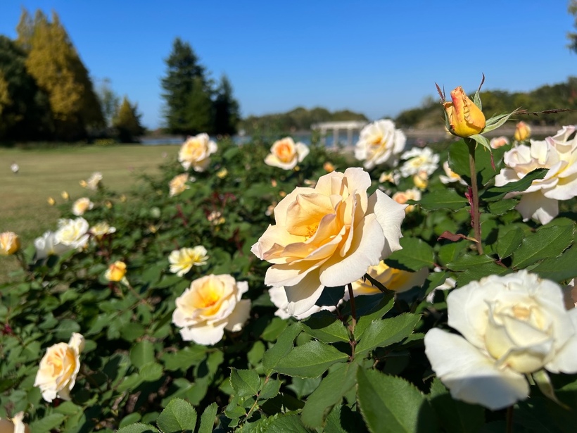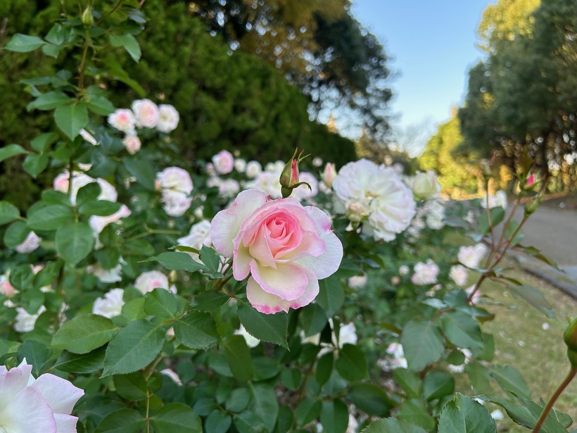 バラ園では例年よりも少し早く、多くの品種が見ごろを迎え始めています。