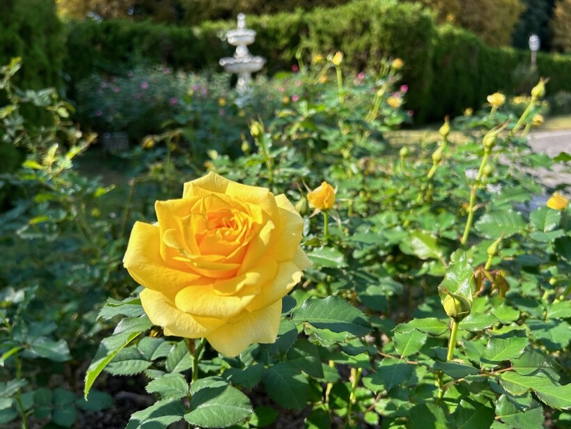最初の写真は「フリージア」という名前のバラです。鮮明な黄色の花で、花名にふさわしいさわやかな香りも楽しめます。