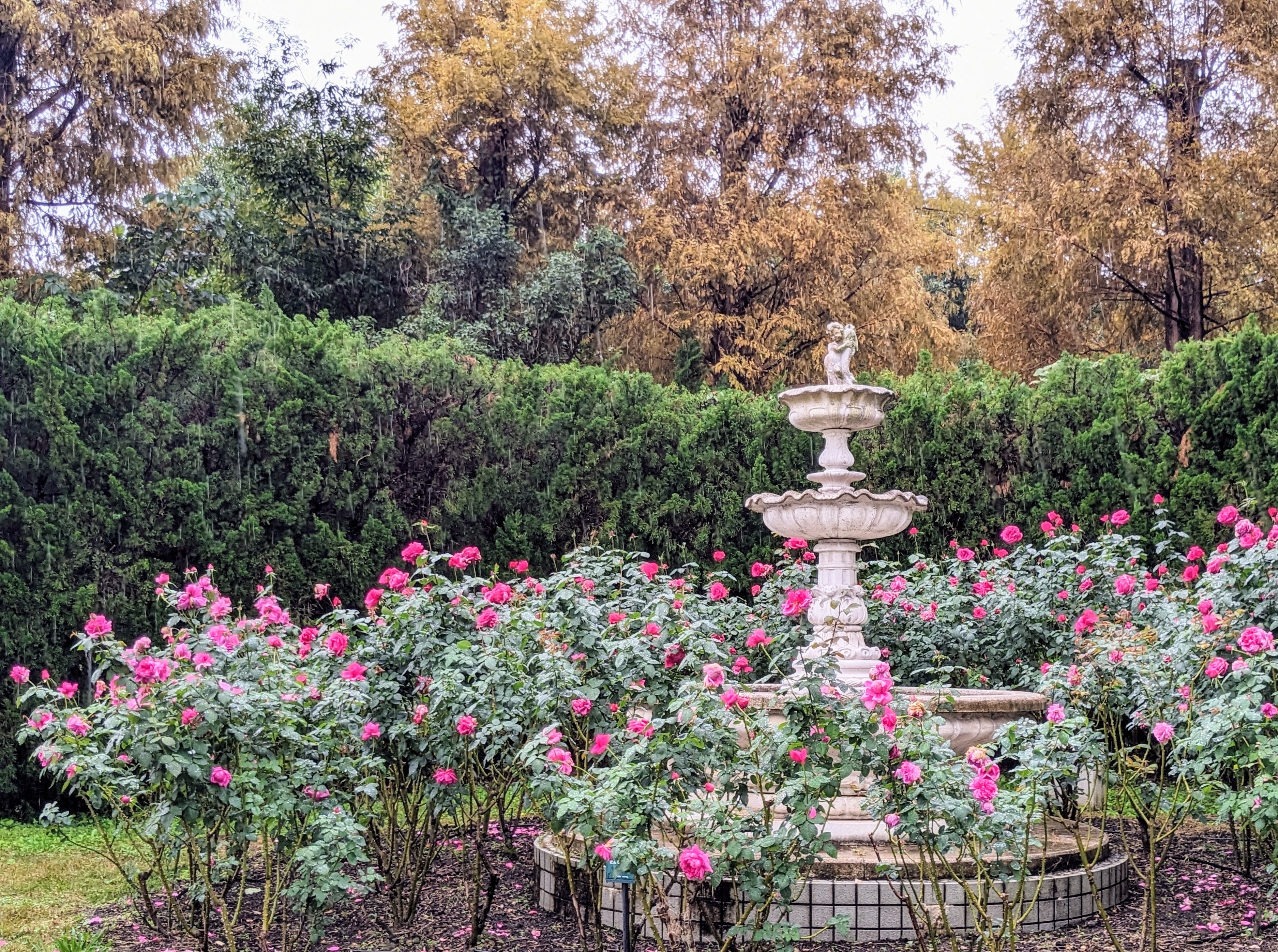 秋の冷たい雨に濡れたバラも、とても綺麗です。