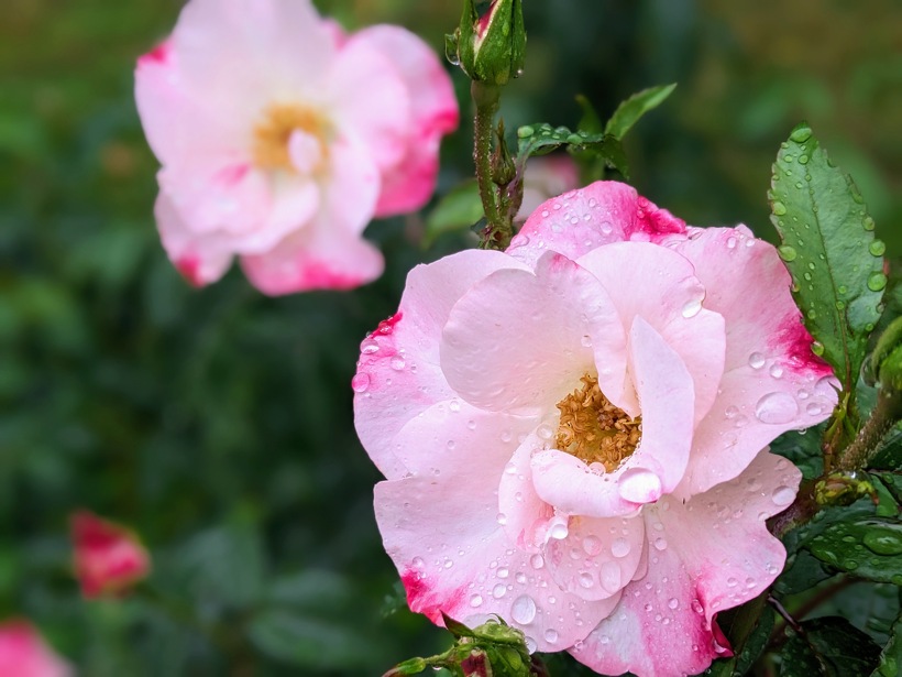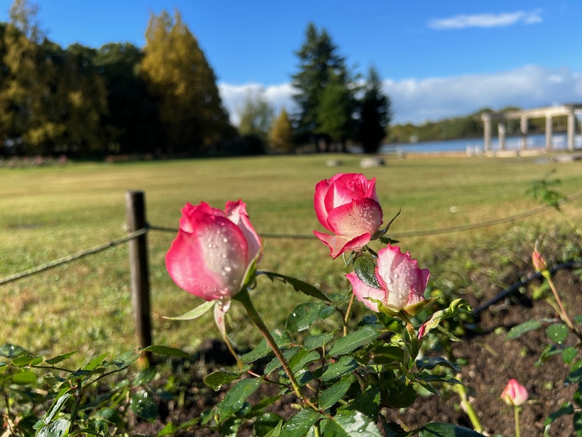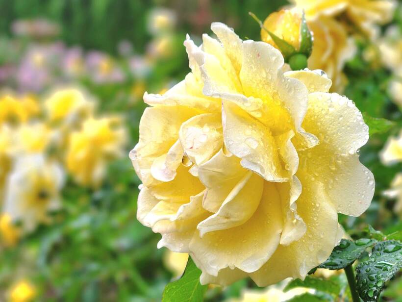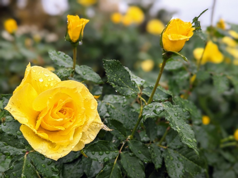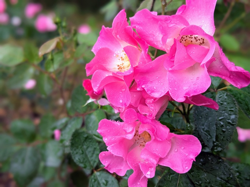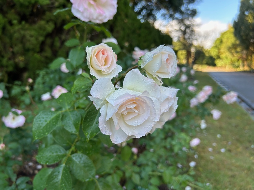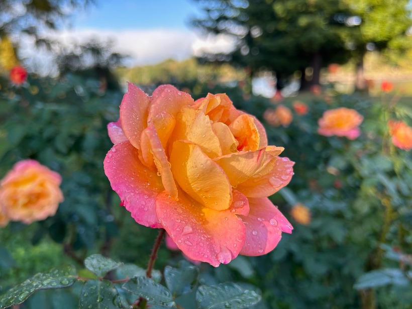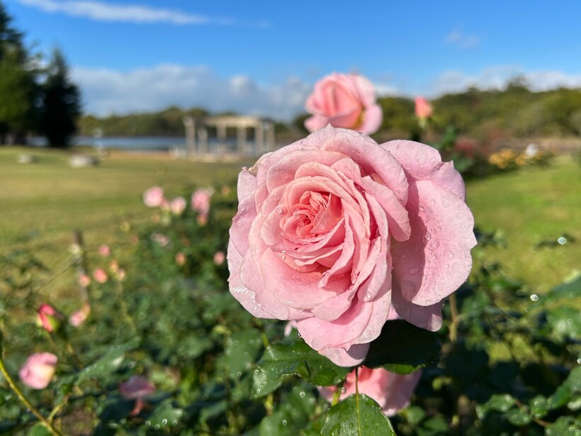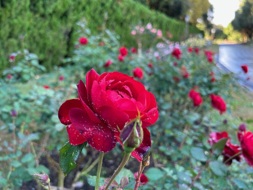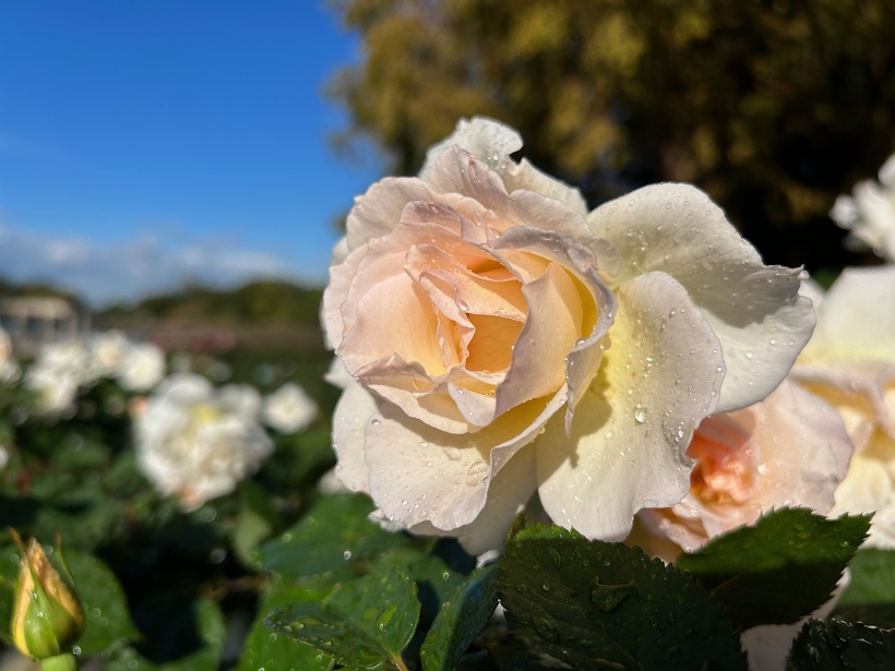 雨上がりのバラ園は、水滴の輝きでより澄んだ美しい色を醸し出します。
