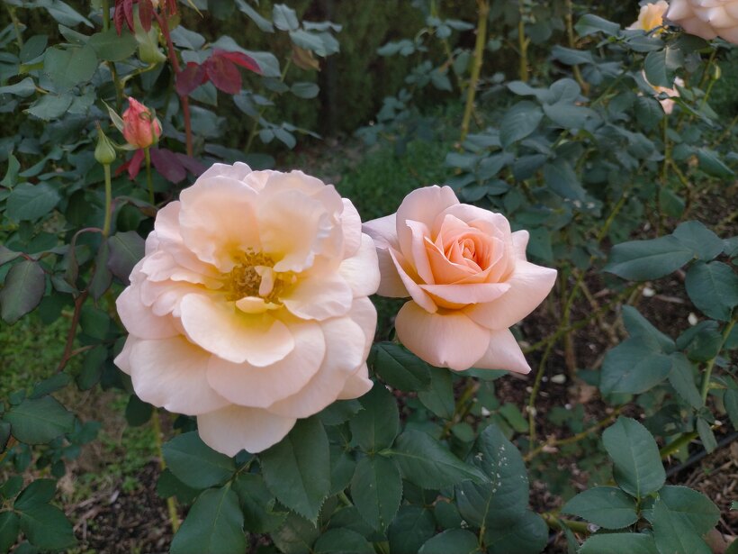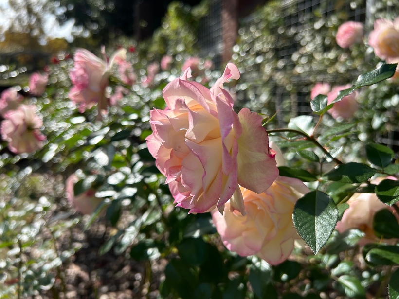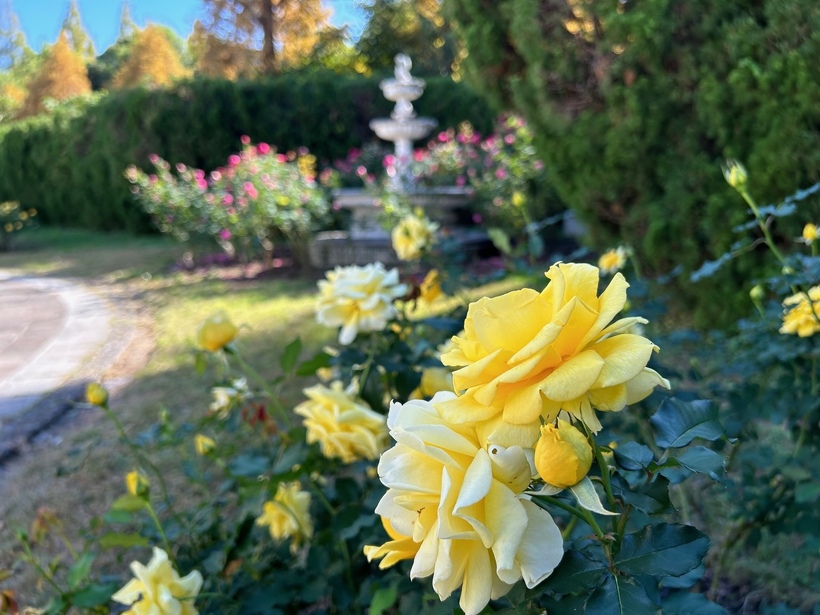 バラ園は素敵な香りに包まれ、深く淡く美しい色でいっぱいです。