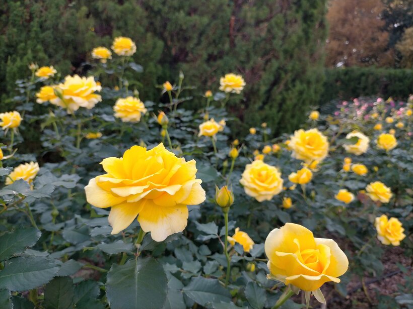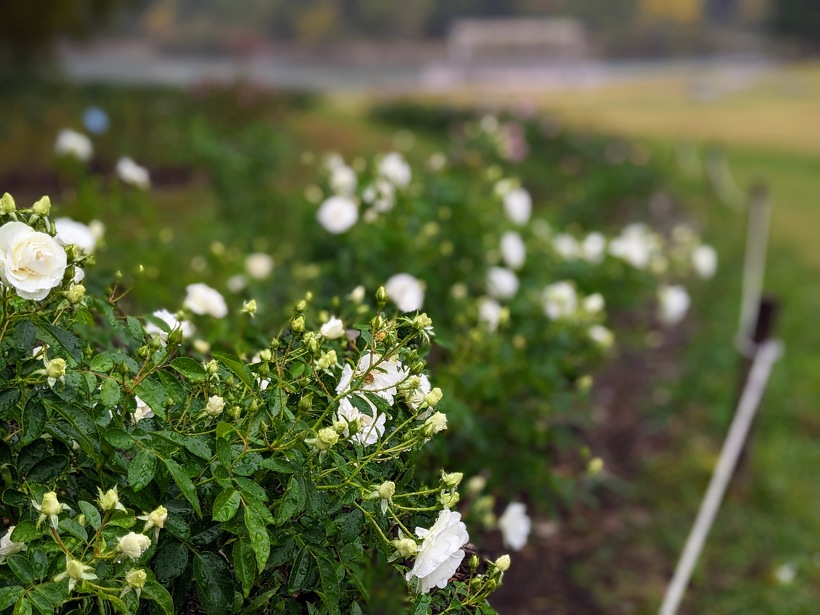 バラ園では、秋バラが開花数を増やしています。綺麗に咲き揃った品種も出てきました。