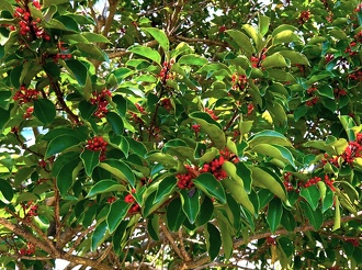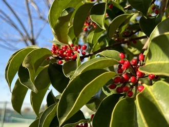 クロガネモチは常緑樹のため、実をつける冬場でも緑の葉を残しています。