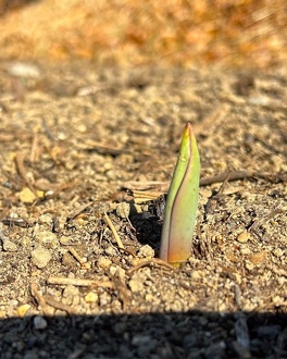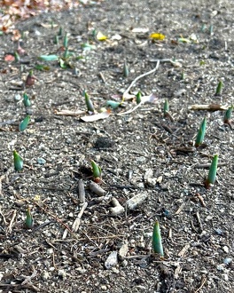 昨年12月に植え付けたチューリップがたくさん芽を出し始めました。開花の見込みは3月末頃です。