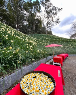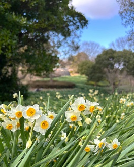 当園水仙郷では60,000株以上のスイセンが斜面一面に咲き、素敵な香りを漂わせます。
