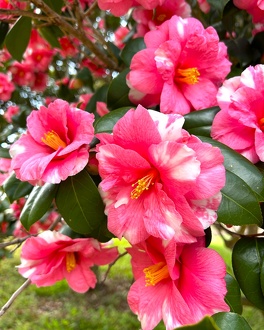 ひと際目を引く花と艶やかな葉、地面に落ちる花までもが絵になるツバキが綺麗です。