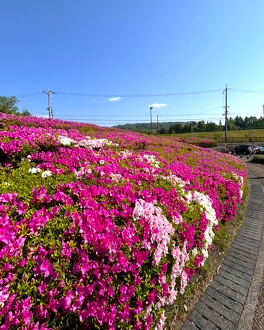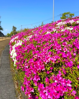 濃いピンク、薄いピンク、白の大きな花々が一面に咲き綺麗です。