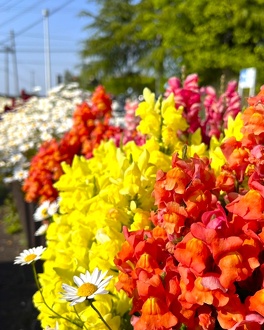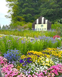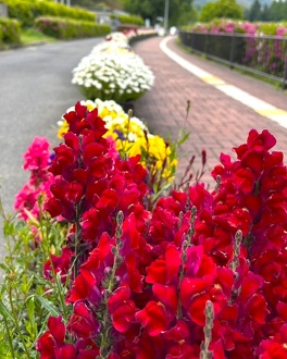 管理事務所やスポーツハウス周りの花壇には、明るくカラフルで元気が出る色合いのビオラ、パンジーやノースポール、エキウム、デイジー、キンギョソウ、ムギ、ヤグルマギク等が大きく育ちご来園される皆様をお待ちしています。