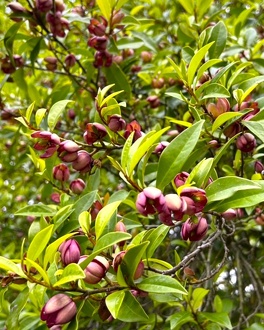 中国南部原産の常緑樹。葉は先が尖って光沢があり、樹高は4~5m程におさまります。