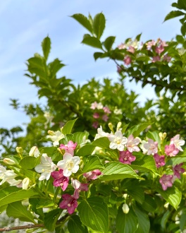 これら三色が一つの枝で同時に咲くのが本種の見どころです。