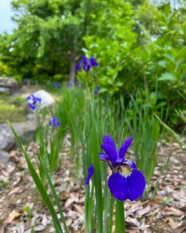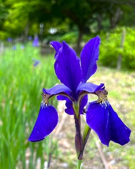 剣のようにすっとした先の尖った葉を持ち、その中心から直立させるように伸びた茎の先に数個の花を咲かせます。