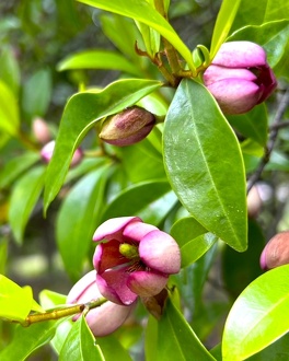 木の大きさに比べると花は小さく色もあまり目立ちませんが、香りでその開花に気づく程の芳香で、バナナに例えられるような甘い香りを漂わせます。