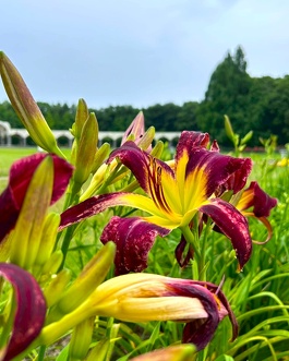 水と緑の音楽広場大池側を囲むように色とりどりのヘメロカリスは咲いています。