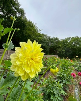 春のダリア(ダリアの広場と大池園路側)が咲き始めました。