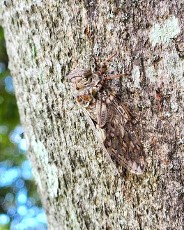 木の肌と同じ体色をして止まっているので見つけるのが非常に難しいセミです。