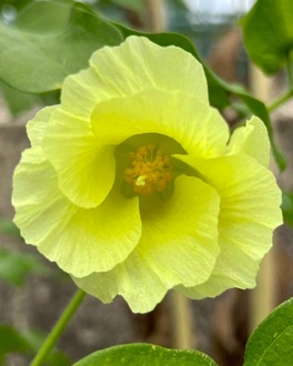 8月〜11月に実る果実はポップコーンのように膨れ、弾けた種子の毛は綿花として、紡績原料や布団の綿、脱脂綿の原料となります。綿の種子である棉実から採った綿実油は、食用油やマーガリン、石鹸の原料となります。綿実油を絞ったカス(粕)は飼料や肥料として使われます。すごい植物ですね!