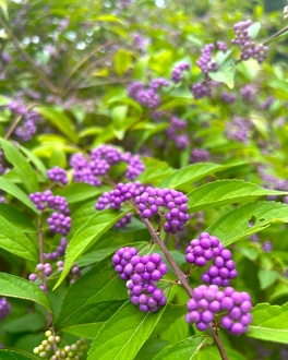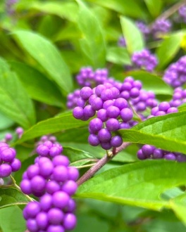 6月頃に淡い紫色の花を咲かせますが、何といっても晩秋まで残る美しい紫色の実の方が印象的です。