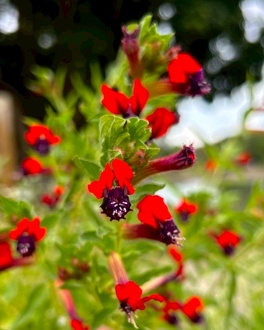 筒状の蕚の先が2つ大きく反り返り、ミッキーマウスの耳みたいなので「タイニーマイス」つまり「小さなネズミたち」と呼んでいます。