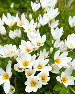 タマスダレ(玉簾)は別名「レインリリー」と呼ばれ、まとまった雨後に一斉に花茎を伸ばし開花することに由来します。