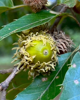 樹皮から、しみ出す樹液にはカブトムシなどの昆虫がよく集まり、大きなまん丸なドングリができます。