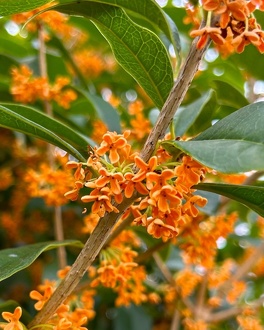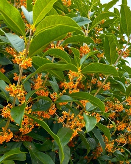常緑小高木で、モクセイの変種です。秋に橙黄色の花を咲かせて甘い香りを放ちます。
