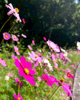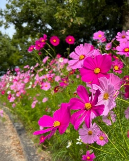 大池園路約150mにも及ぶコスモスロードは、風に揺れる可憐な花をたくさんご覧いただけます。